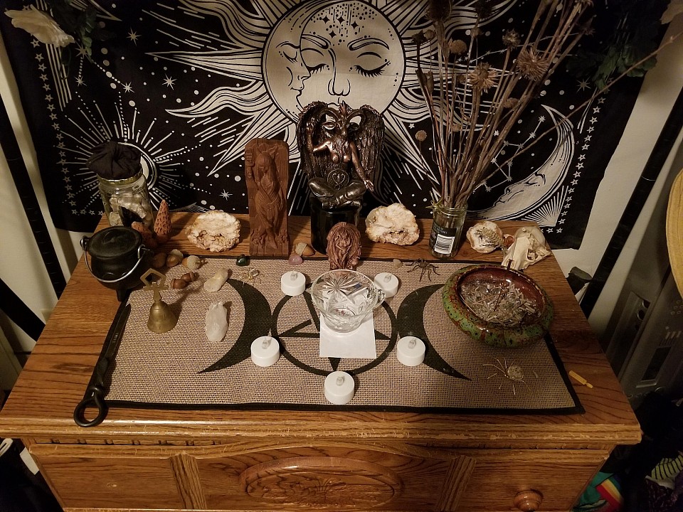 Disposez les objets de manière ordonnée (bougies, photo, encens, cristaux, etc.).